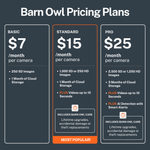 When you receive your cameras, you can select any of our plans in Barn Owl HQ. Plans start from just $7 per camera, per month. See our Billing Plans and Billing Policy for details.